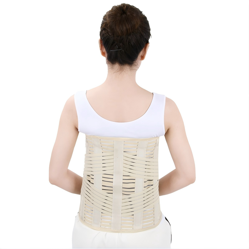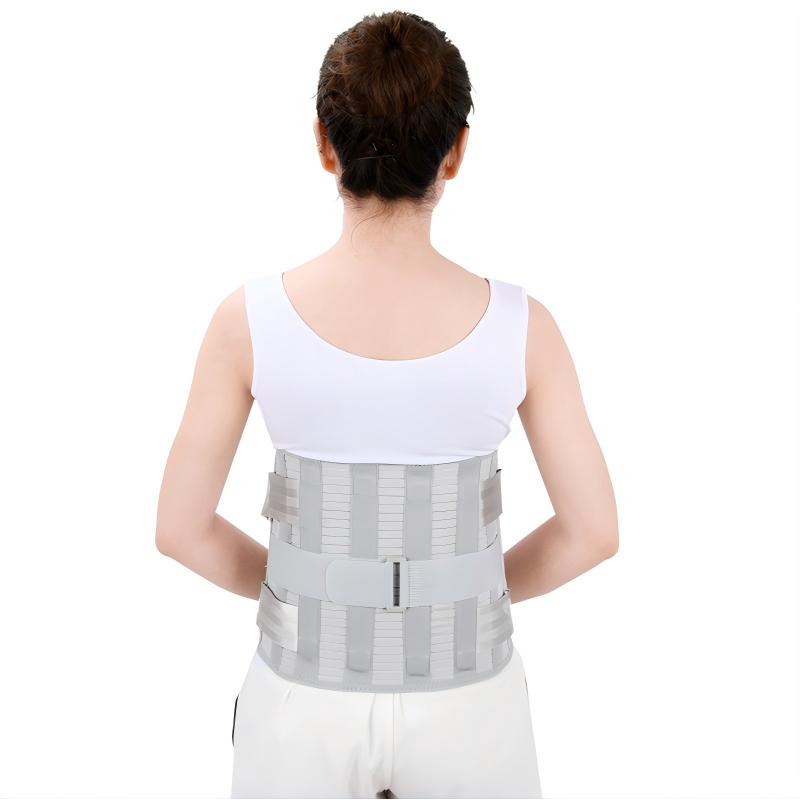 Reinforced Metal Plate Support: Embedded vertical metal plates provide rigid structural support to the lumbar spine, stabilizing the lower back and limiting harmful movement.