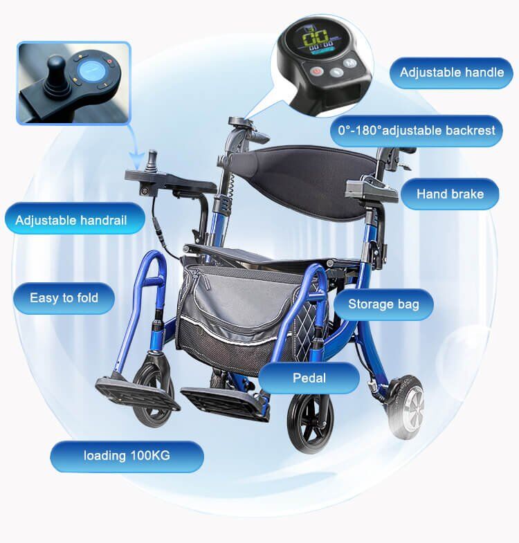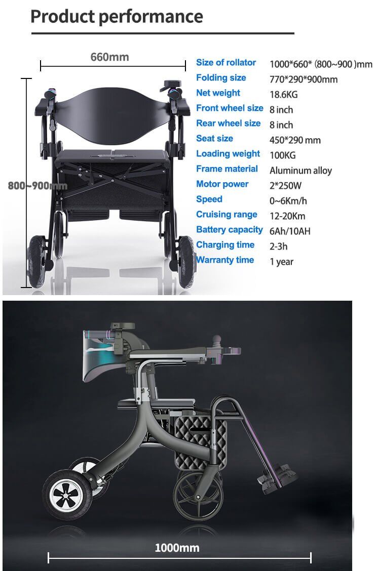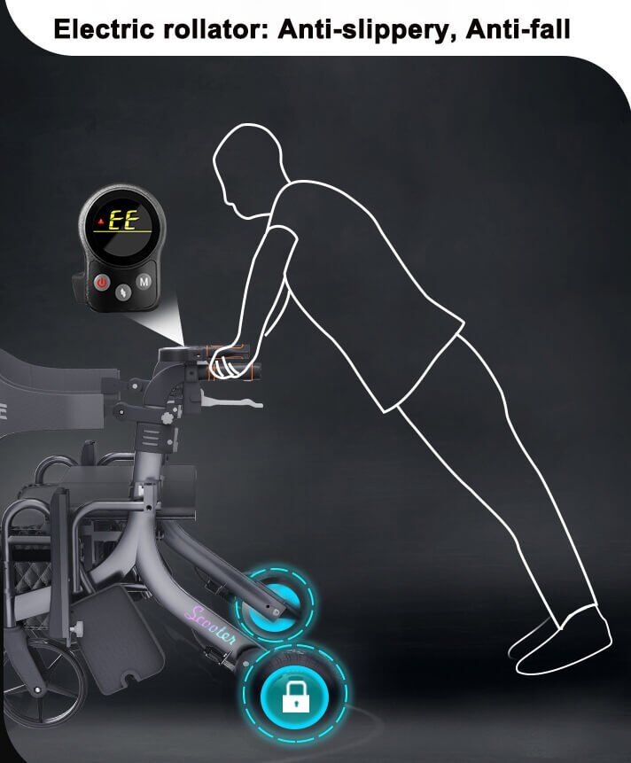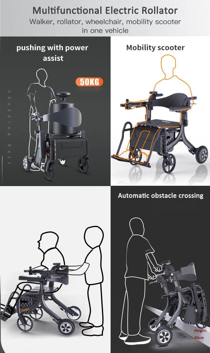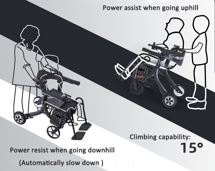Powered 4 wheeled rollator makes it easy to go uphill