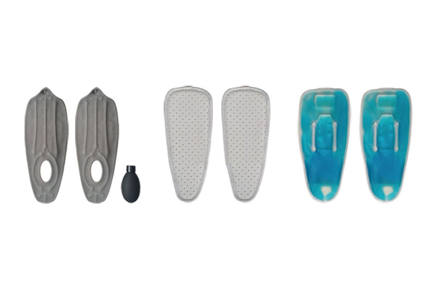 Material: Rigid plastic shell, breathable perforated lining, gel pad (gel style), inflatable air bladder (inflatable style)