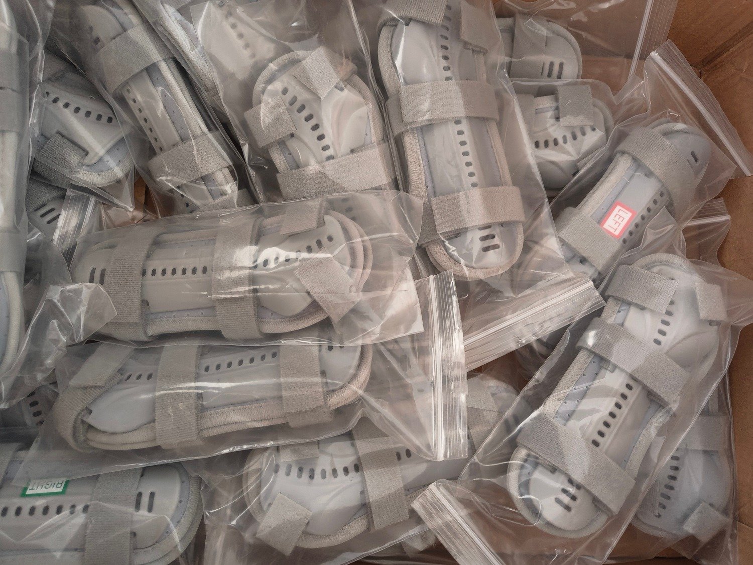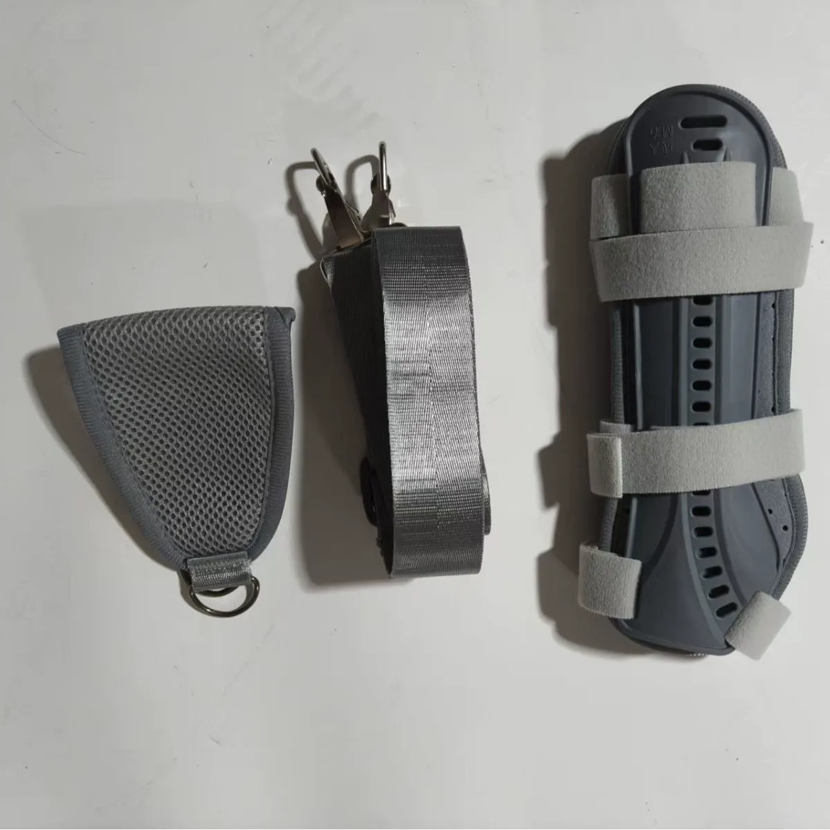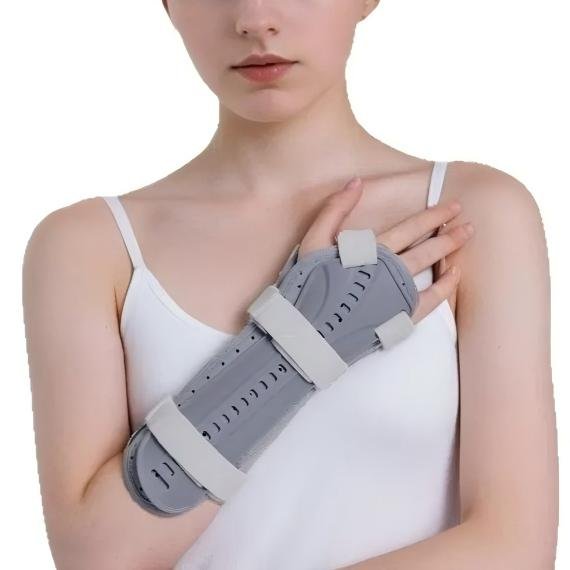 Material: Rigid plastic splint, breathable composite fabric padding, adjustable Velcro straps
