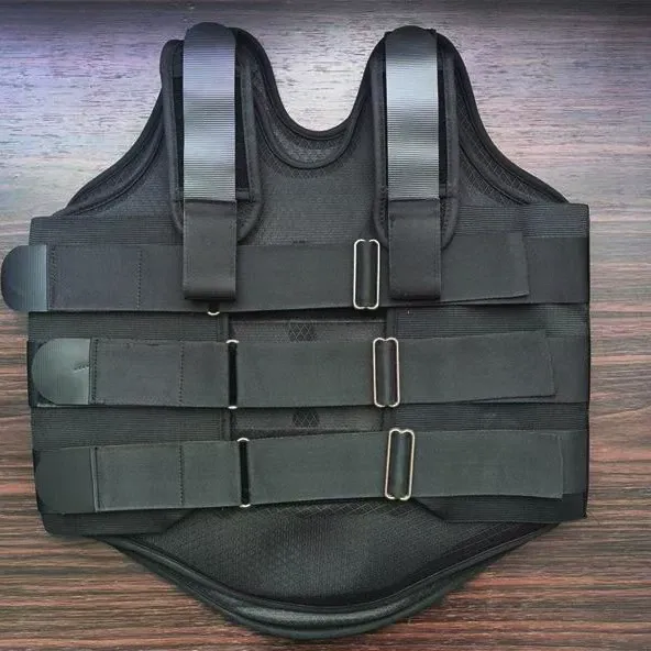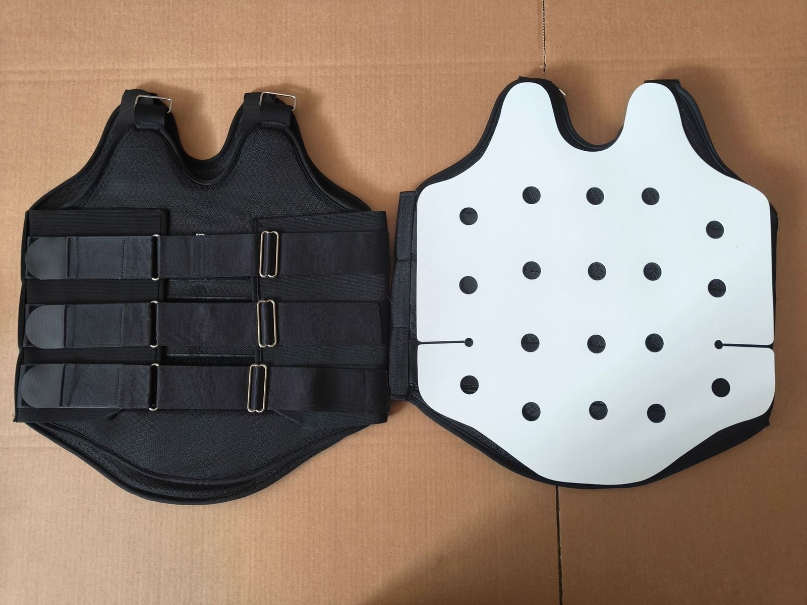 Structure: Vest-style front panel + rigid back panel + 3 waist straps + 2 shoulder straps